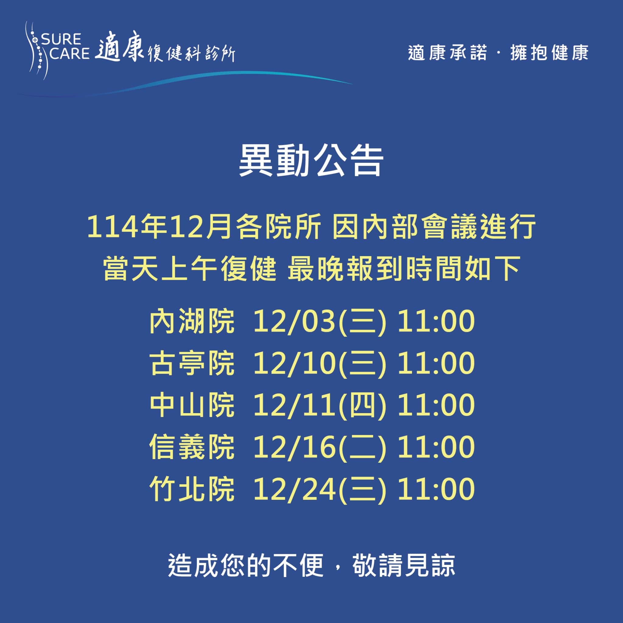 【#適康復健|門診異動公告】