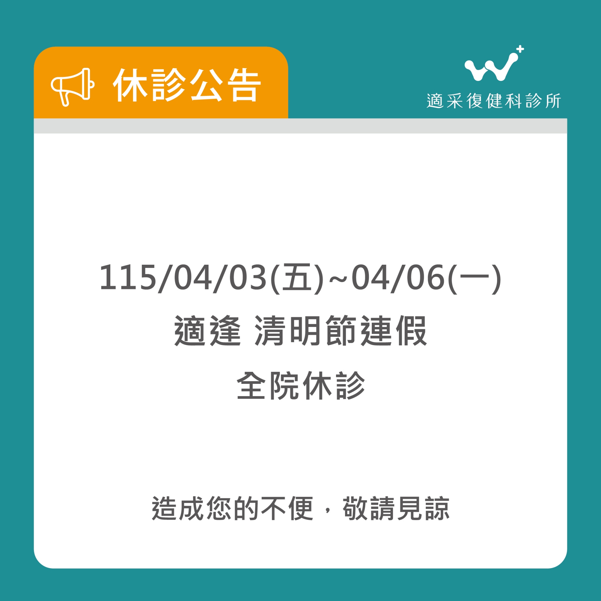 4/3(五)~ 4/6(一)全院休診、復健治療暫停