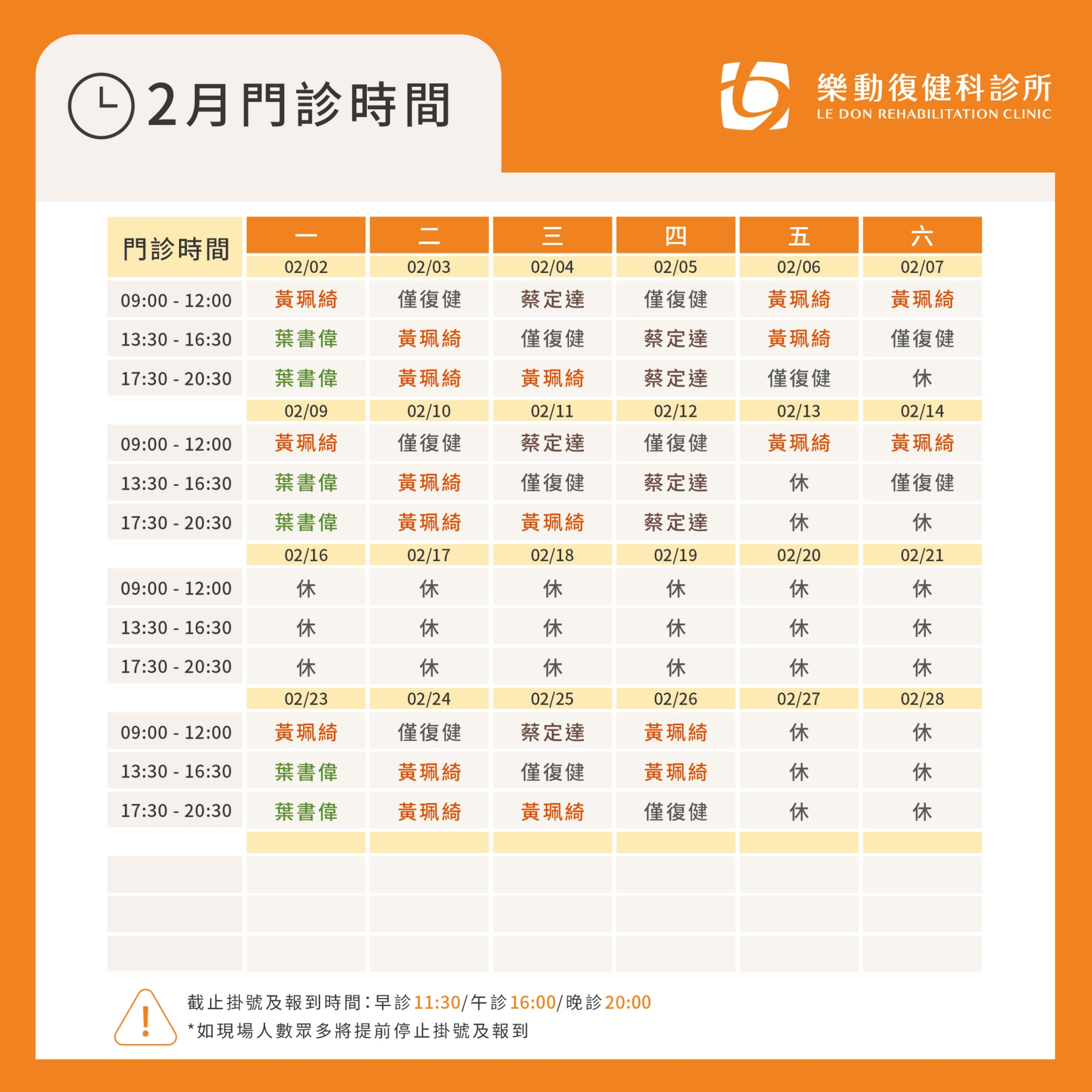 *如遇現場候診病人眾多,將會提前止掛
